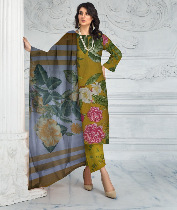 Embroidered Printed Cambric Shirt Front: 1 Piece